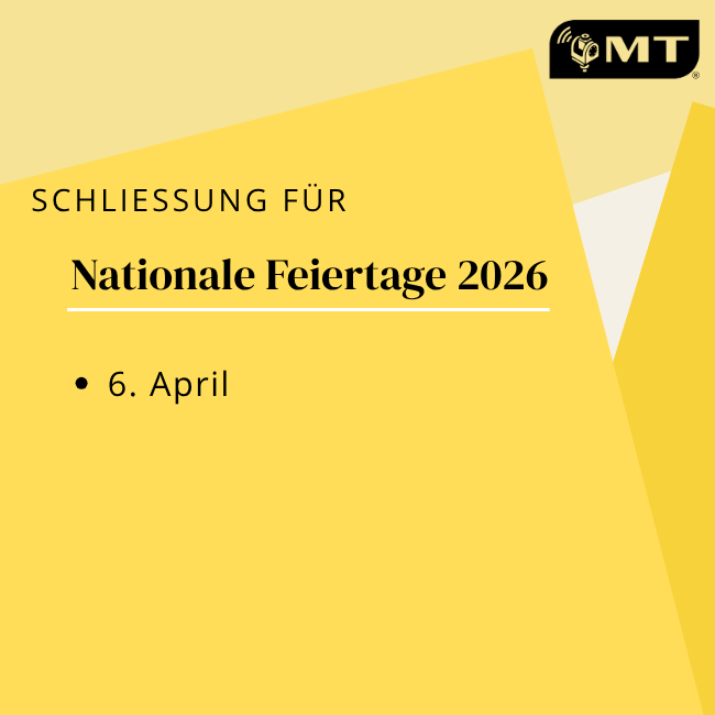 M.T. ist am 6. April, am 1. Mai sowie am 1. und 2. Juni 2026 geschlossen.